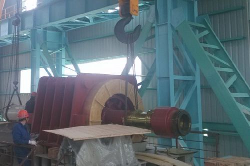 电机一般由定子、转子和机壳等附件组成,通常电机为一个整体进行吊装。该工程因粗轧机电机大、重量重,运输不便,设备生产商分部件配送,在现场进行组装。冶金工程技术公司机装五处精心组织施工,优化吊装方案,使用主轧跨50t行车和自制“扁担”对重为21t的转子进行吊装,在定子的另一侧通过50t汽车吊配合,顺利地完成了转子对定子的“穿芯”工作。