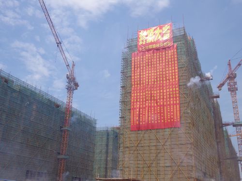位于市开发区银塘路的银塘安置房B区分为两大区,南区为公租房,北区为安置房。82#两栋楼属于北区安置房,总建筑面积分别为11565.23m2,一梯四户、十一层小高层。工程自从年初开工以来,项目公司以及项目部积极开展“树、讲、比”主题活动,精细组织、合理安排工序,克服了夏季高温等困难,顺利完成封顶,保证了工程节点的完成。