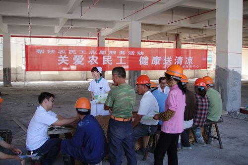 87,马鞍山市花山区卫生局在中国十七冶集团承建的市金安小区项目施工现场一线员工开展“关爱农民工、健康送清凉”活动。