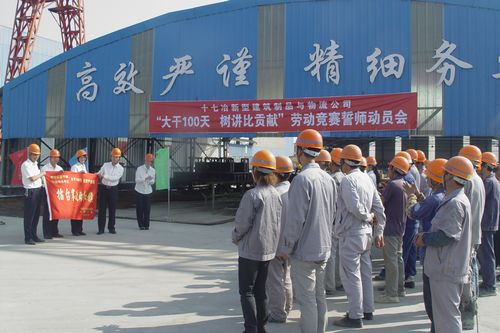 新型建筑制品与物流公司下属的新型制品部承担着十七冶住宅产业化新产品生产构件的研发、制作和安装任务。目前,面对住宅产业化示范楼的建设需求,连日来制品部整合现有人力,合理分工,全体员工加班加点,生产出一批批合格产品。产业园生产基地内,彩旗招展、标牌醒目,现场一片紧张、忙碌、有序的生产场景。为了充分调动现场广大员工的生产积极性,促进生产、激发干劲,确保项目需要,公司组织文化部适时组织开展了“大干100天,树讲比贡献,追梦产业园”劳动竞赛誓师动员会。
