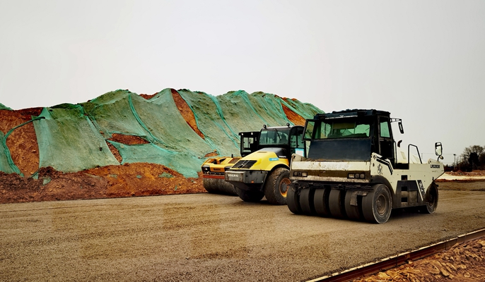 此次水稳基层摊铺的梁场到三张路口段,是K7+700至K8+056段右幅机动车道,路面宽度12.4米,结构为2层沥青面层和2层水泥稳定碎石基层,摊铺的水稳下基层设计厚度18厘米,采用一台摊铺机分幅铺筑,碾压采用一台双钢轮压路机、一台单钢轮压路机和一台胶轮压路机组合碾压。为确保水稳上基层顺利摊铺,项目部精心组织、科学谋划,施工时严格控制水稳混合料的拌合、运输、摊铺、碾压、检测等各个环节,施工后对摊铺路段的标高、压实度、平整度、厚度等进行了检测,确保各项指标均符合规范及设计要求,全力保障施工质量。 项目团队将继续发扬“一天也不耽误,一天也不懈怠”的企业精神,践行“24小时工作法”,保质保量完成后续工作,确保项目早日竣工通车。